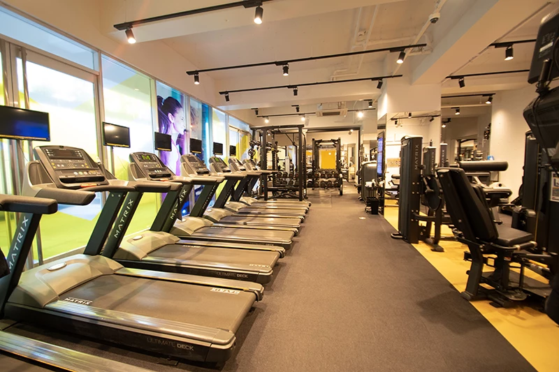 ・上下セパレートタイプのフィットネスウェア肩、ウエスト周りが露出しており、ボディラインが分かるもの